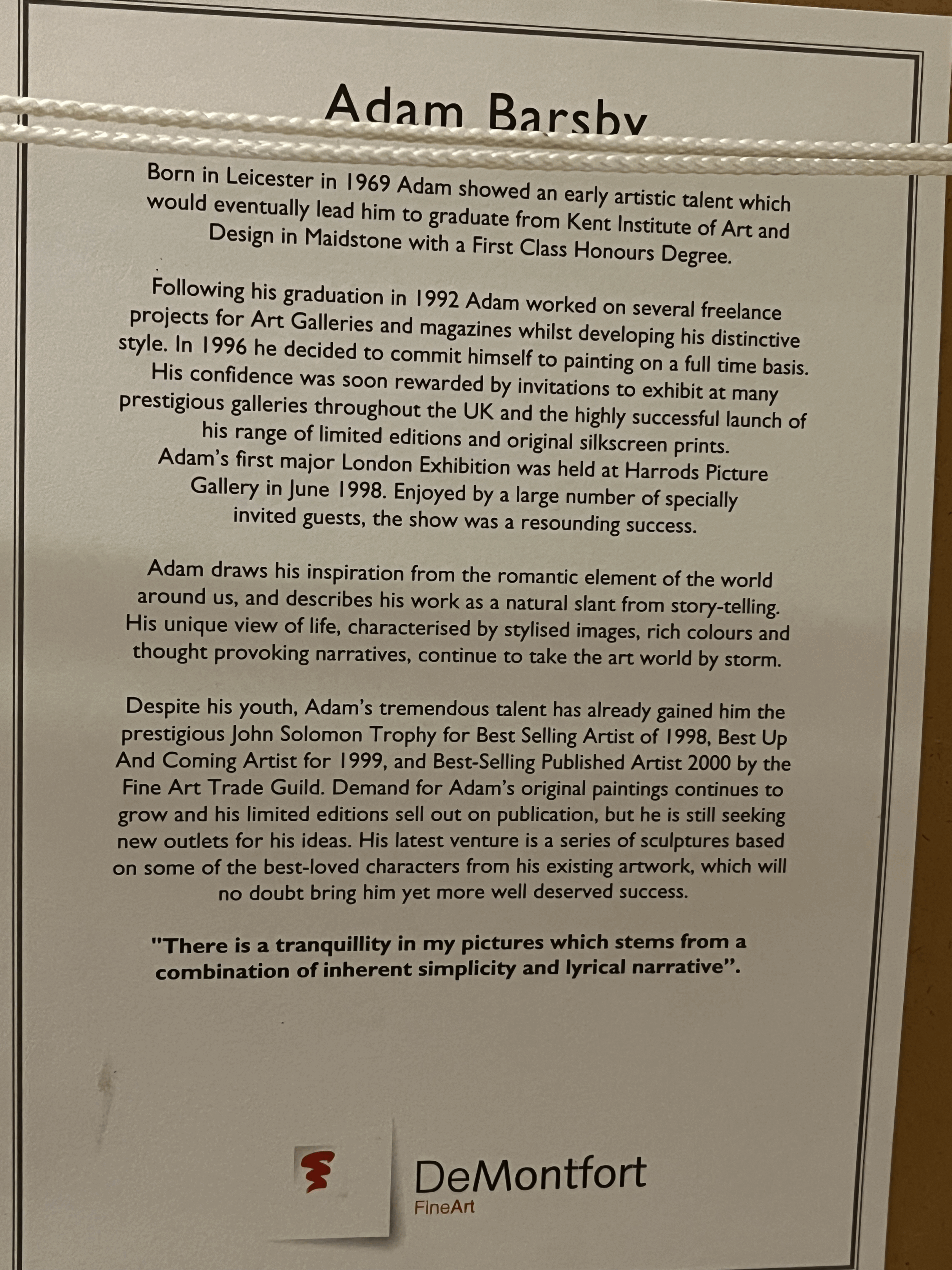 Shop Categories: All GIFT CERTIFICATES BRAND NEW PRE-LOVED LOCAL ARTISTS NOT A PAINTING Shop All | GIFT CERTIFICATES | BRAND NEW | PRE-LOVED | LOCAL ARTISTS | NOT A PAINTING | Quick View Jenny Grogan ‘A Walk In The Woods’ Signed Original £225.00 Add To Cart Added! Quick View Jenny Grogan ‘Sunny Meadows’ Signed Original £215.00 Add To Cart Added! Quick View Jenny Grogan ‘Peace’ Signed Original £295.00 Add To Cart Added! Quick View Royal Mail commemorative stamps framed SHERLOCK £50.00 Add To Cart Added! Quick View Royal Mail commemorative stamps framed STAR WARS £75.00 Add To Cart Added! Quick View Royal Mail commemorative stamps framed JAMES BOND £50.00 Add To Cart Added! Quick View SUE VERITY ‘The Joker’ signed original £2,500.00 Add To Cart Added! Quick View Chris Voas ‘Coming Through’ signed original £335.00 Add To Cart Added! Quick View Chris Voas ‘The Skys The Limit’ signed original £285.00 Add To Cart Added! Quick View Chris Ross Williamson ‘MARILYN’ signed limited edition print £235.00 Add To Cart Added! Quick View Gary Walton ‘Caviar & Roe’ signed limited edition print £210.00 Add To Cart Added! Quick View Gary Walton ‘The Night Before Christmas’ signed limited edition print £255.00 Add To Cart Added! Quick View Gary Starkey original ‘ Polperro Harbour’ Sale Price: £125.00 Original Price: £150.00 Sale Add To Cart Added! Quick View Sophia Lynch ‘PATIO’ Signed Limited Edition Print , 6/195 Sale Price: £80.00 Original Price: £130.00 Sale Add To Cart Added! Quick View Rita Farrugia - A Unique Print - Abstract Study Sale Price: £75.00 Original Price: £100.00 Sale Add To Cart Added! Quick View TWO JOHN HOLT Signed Limited Edition Prints ‘Poppies’ & ‘Sunflowers’ Sale Price: £80.00 Original Price: £125.00 Sale Add To Cart Added! Quick View CHRIS VOAS ‘Outlook’ Original £495.00 Add To Cart Added! Quick View CHRIS VOAS ‘Sign of the Times’ Original £425.00 Add To Cart Added! Quick View LOVEJOY’S GIFT CERTIFICATE from £50.00 Select Value £50.00 £75.00 £100.00 Purchase Added! Quick View PARRISH PAYTON ‘ICE’ ORIGINAL £390.00 Add To Cart Added! Quick View PARRISH PAYTON ‘REFRESHING!’ ORIGINAL £595.00 Add To Cart Added! Quick View Three Jingdezhen Scenic Vases £200.00 Add To Cart Added! Quick View PAT McMANUS ‘POLAR BEAR’ Signed Limited Edition Print 3/125 £80.00 Add To Cart Added! Quick View PAT McMANUS ‘GRIZZLY’ Signed Limited Edition Print 98/125 With Certificate £60.00 Add To Cart Added! Quick View Parrish Payton ‘WISDOM’ original £895.00 Add To Cart Added! Quick View Parrish Payton 'LEMONS IN WATER’ Signed Original £595.00 Add To Cart Added! Quick View FRANCOIS ‘FANCH’ LEDAN - ‘CAPE COD LIGHTHOUSE’. signed Limited Edition Print 417/950 £170.00 Add To Cart Added! Quick View ‘WEEVILS GAMBLING’ By NATHIOLA. ORIGINAL OOAK Signed Oil On Canvas £400.00 Add To Cart Added! Quick View ‘GEISHA’ By Tamworth/Liverpool Artist NATHIOLA. Original OOAK oil On Canvas £350.00 Add To Cart Added! Quick View WALTER JENKS MORGAN - 'A DAY OUT’ signed original pencil drawing £60.00 Add To Cart Added! Quick View NICK HOLDSWORTH - 'LOVE LONDON’ signed pixelated print Sale Price: £175.00 Original Price: £275.00 Sale Add To Cart Added! Quick View Charles Willmott ‘La Danse De La Vie’ Artist Proof Print 14/20 £145.00 Add To Cart Added! Quick View DERRICK FIELDING’ The Day We Fell In Love’ Signed Limited Edition Print £375.00 Add To Cart Added! Quick View DERRICK FIELDING ‘Our Spring Has Finally Sprung’ limited edition print £410.00 Add To Cart Added! Quick View CHESS 'Breakfast At Tiffany’s’ Limited edition print £375.00 Add To Cart Added! Quick View CHESS 'National Geographic’ limited edition print £375.00 Add To Cart Added! Quick View JJ Adams 'Brand Grenades Full Set’ Artist Proof Print, 2/5AP Sale Price: £850.00 Original Price: £899.00 Sale Add To Cart Added! Quick View Vladan Ignatovic ‘Shades Of Life’ Signed Limited Edition Print 11/195 £135.00 Add To Cart Added! Quick View Ted Hoefsloot ‘Fordsburg Cafe’ Original Acrylic Painting £90.00 Add To Cart Added! Quick View Peter Wileman - Limited Edition Print ‘Moonlight In Venice’ 81/195 £135.00 Add To Cart Added! Quick View Kelly Jane - Original, ‘Echinacea/Coneflower’ £75.00 Add To Cart Added! Quick View Native American Style Handmade And Hand Painted Pot £130.00 Add To Cart Added! Quick View Sarah Farrow - ‘Magdalen Tower’ signed Original mixed media on paper £95.00 Add To Cart Added! Quick View JJ ADAMS ‘THE DIVIDED STATES OF BRITAIN’ limited edition print £650.00 Add To Cart Added! Quick View Cobridge Stoneware Vase, ‘MISTRAL SUNSET’ Signed By Anita Harris £180.00 Add To Cart Added! Quick View JAMES AUMONIER (1832-1911) ‘RIVERSCAPE WITH BOATS’ ORIGINAL £175.00 Add To Cart Added! Quick View WILLIAM RUSSELL FLINT ‘RETREAT FROM THE SUN’ -possible AP for edition of 850 Sale Price: £195.00 Original Price: £275.00 Sale Add To Cart Added! Quick View WILLIAM RUSSEL FLINT ‘THE BEACH GAME’ limited edition print Sale Price: £195.00 Original Price: £295.00 Sale Add To Cart Added! Quick View TROIKA ‘TRINITY’ limited edition print Sale Price: £250.00 Original Price: £350.00 Sale Add To Cart Added! Quick View JAKE WINKLE ‘THE THREE AMIGOS’ limited edition print £250.00 Add To Cart Added! Quick View RICH PARKER ‘REFLECTIONS’ ORIGINAL Sale Price: £275.00 Original Price: £375.00 Sale Add To Cart Added! Quick View AAMINAH SNOWDON ‘TICKLED PINK’ Limited edition print. £195.00 Add To Cart Added! Quick View AAMINAH SNOWDON ‘EASY BREEZY’ Limited edition signed print £195.00 Add To Cart Added! Quick View CRAIG DAVISON 'WEB DESIGNER’ limited edition print Sale Price: £405.00 Original Price: £445.00 Sale Add To Cart Added! Quick View KEALEY FARMER - 'HE REMEMBERS' Limited Edition Print £375.00 Add To Cart Added! Quick View KEALEY FARMER OR