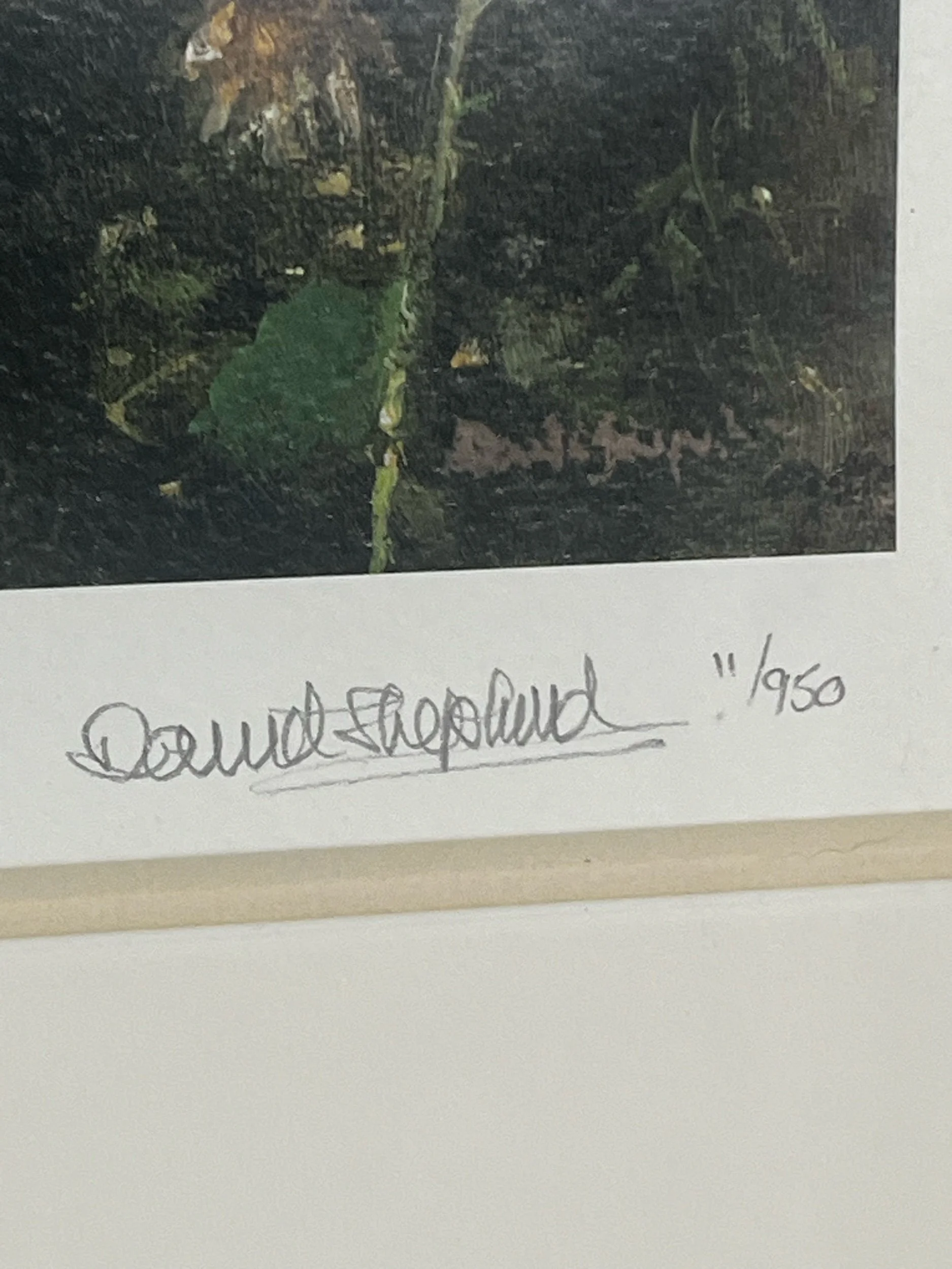The product is a set of two limited edition prints by artist David Shepherd, featuring the images 'Harvest Mouse' and 'Water Vole'. These signed prints are mounted and framed, with a certificate of authenticity issued by Solomon & Whitehead. Created using lithography technique, the prints are a contemporary piece with a realistic style. Measuring 35 cm in height and 37 cm in width, these prints are a unique addition to any art collection, showcasing Shepherd's talent in capturing the essence of nature.
